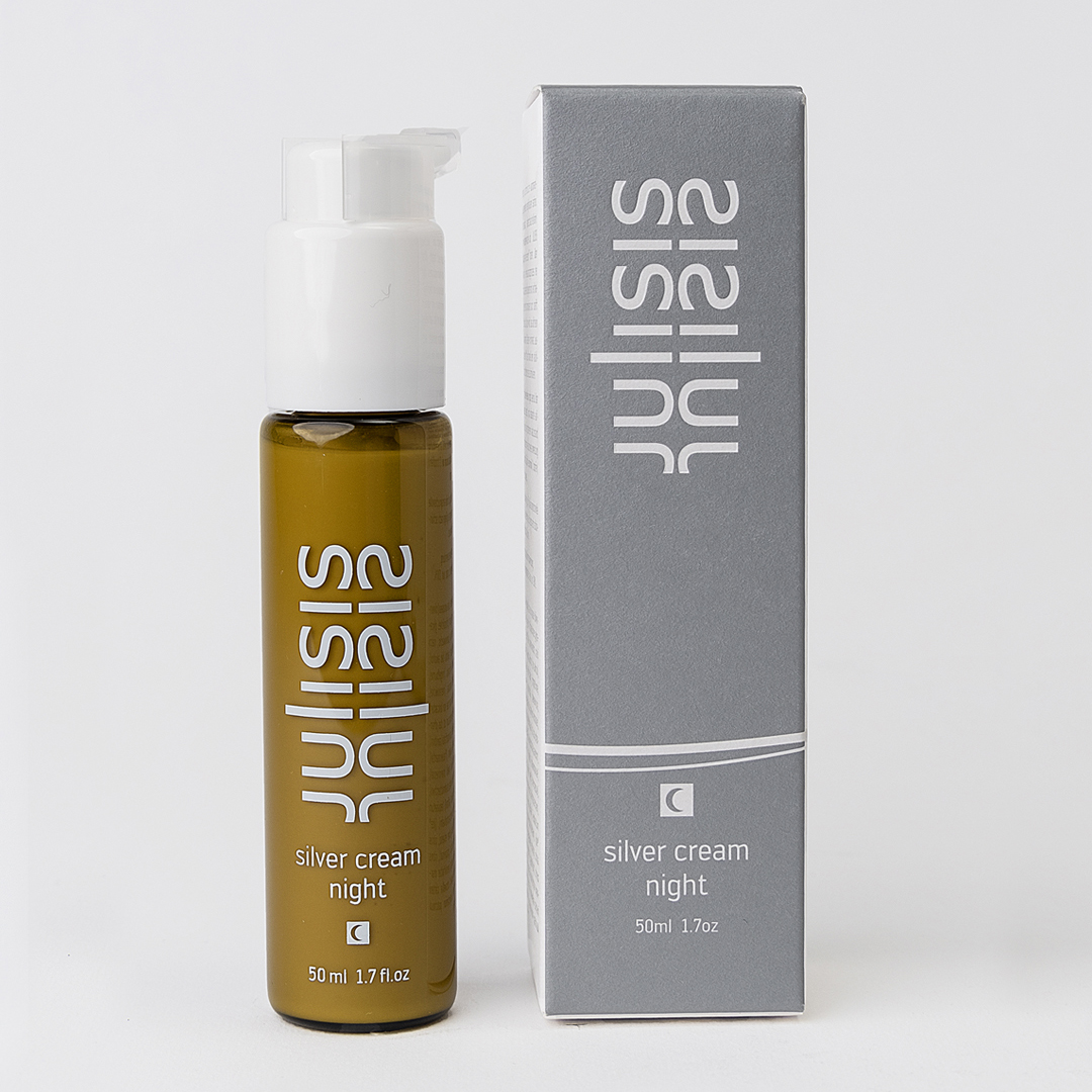 silver cream night ist eine komplexe Formel für Ihr abendliches Hautritual, die entwickelt wurde, um über Nacht zu entgiften, zu straffen und zu erneuern. Angereichert mit Johanniskrautöl, Safran, Weihrauch und anderen medizinischen Heilpflanzen unterstützt es den natürlichen Erneuerungsprozess Ihrer Haut. Die spezielle Mischung mit flüssiger Silberessenz jlse® von JULISIS fördert die Harmonisierung und Verjüngung und minimiert sichtbar das Auftreten von feinen Linien und Fältchen. Ideal für die anspruchsvollste Haut und speziell für die postoperative Pflege oder Krebspatienten.
