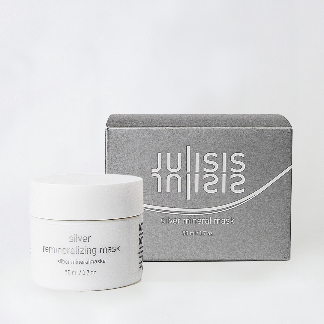 This highly effective and soothing mask with JULISIS liquid silver essence® purifies and refreshes tired and stressed skin. The mineral and enzyme complex ensures a healthy, clear complexion. Pores appear refined and signs of fatigue are reduced. Free radicals are neutralized and premature skin aging is prevented.